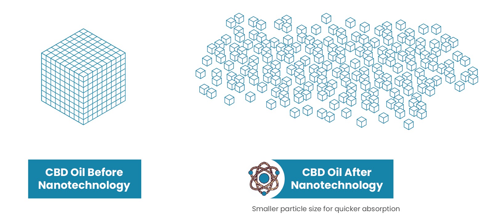 This is what our proprietary nano system does — it breaks large lipid balls full of cannabinoids down thousands of times to the molecular level. The smaller the particle size, the easier it is for the cells of your body to absorb it. Every time you cut the particle size in half, you increase its surface area. Think of the exponential surface area when you reduce particle sizes hundreds of times. This process will not only make hemp oil concentrate much more potent, it will make delivery time to the cells a matter of seconds; not hours!